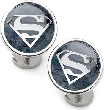 The Man of Steel's iconic emblem adds super style to comic-book cuff links with handsome sodalite inlays.