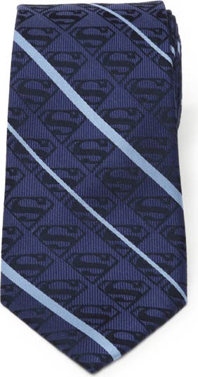 It's a bird, it's a plane, it's Superman—on a tie, of course. Elevate your wardrobe with a silk tie patterned with stripes and the iconic Superman logo.