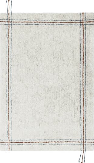 Avoid spills and stains with a plush rug featuring a recycled-textile base, tassel trims and neutral stripes that's machine washable for easy cleanups.