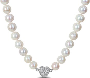 Cultured Edison Pearl Necklace Moissanite Heart Clasp