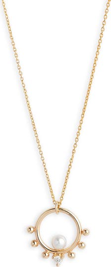 A cultured pearl floats in a beaded pendant that brings bubbly texture to this 14-karat-gold necklace.