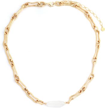 An organic freshwater pearl brings refined luster to an elegant chain link necklace plated in 14-karat gold.