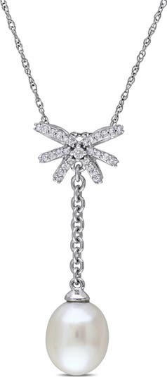 Cultured Pearl & Diamond Lariat Necklace 10k