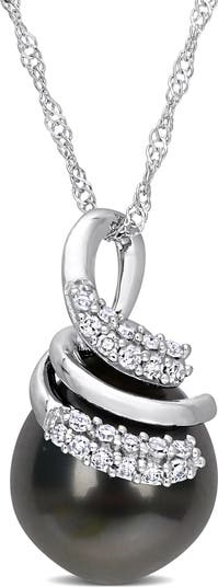 This pretty cultured pearl and diamond swirl drop necklace is crafted in 14-karat gold. This swirl pendant features one round shaped cultured pearl and 21 round-cut diamonds in pave setting that are beautifully embellished on the pendant. This pendant is suspended on a 17-inch chain and is secured with spring ring clasp. Coordinate this pearl and diamond pendant with any ensemble for an everyday wear or dressy occasions and elevate your look.