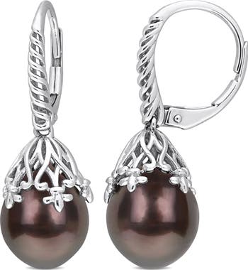 Cultured Pearl Filigree Leverback Earrings 14k