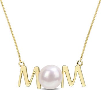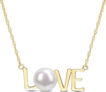 Cultured Pearl "LOVE/MOM" Necklace 10k