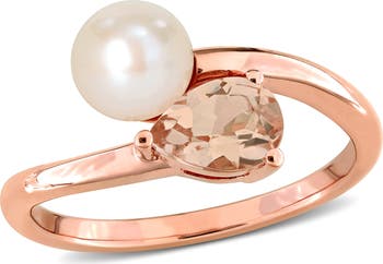 Cultured Pearl & Morganite 2-Stone Ring 10k