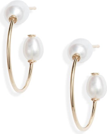 Cultured pearls gleam at both ends of these stunning hoop earrings that are rendered from 14-karat recycled gold.