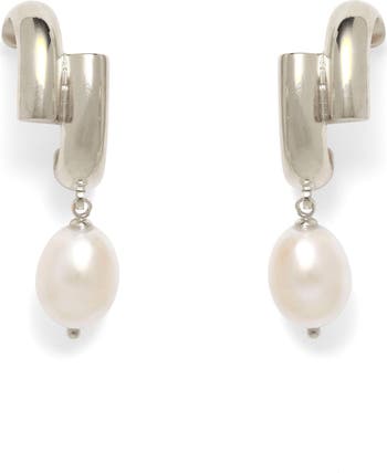 A drop earring and ear cuff design combine in these post-back earrings that hook into your ears. Cultured pearls and a fine-metal finish elevate your glow.