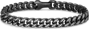 White diamonds create striking shine against black titanium in this contrast-focus chain bracelet.