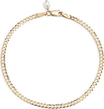 Flat curb links shape a steady stream of gleam on this handcrafted chain bracelet of 14-karat gold.