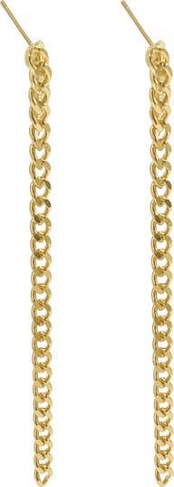 Bring texture, shine and swingy movement to your look with these curb-chain drop earrings plated in 18-karat gold.