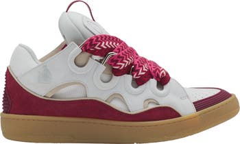 The Curb sneaker is a tribute to the skating community of the 90s. It embodies several of Jeanne Lanvin's signatures. Contrast, with the interplay of materials, textures and colors. The Ribbon, with oversized laces, symbolizing the union between mother and daughter. The Circle, with rounded lines inspired by Art Deco architecture. These sneakers have a side seam to ensure durability, good insulation from the cold and damp, and greater flexibility. This season, the Studio offers new color combinations, with hand-painted leathers.