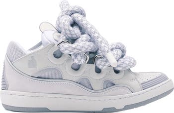 Lanvin CURB SNEAKERS IN LEATHER WITH SNAKE LACES, Main, color, White