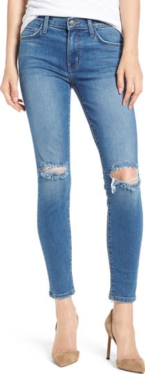 Faded blue stretch denim keeps these super-skinny jeans sleek, comfortable and perfect for the weekend.