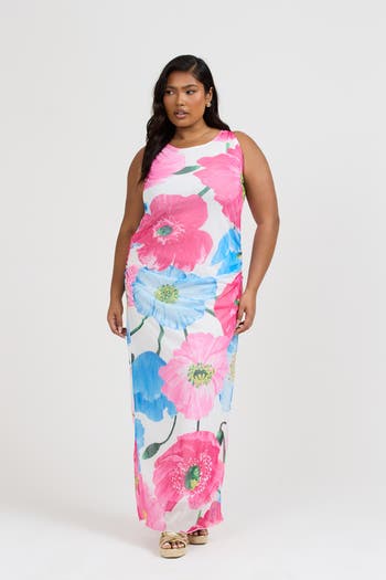This Plus Size Maxi Dress flaunts a beautiful floral print in a calming summer tone, perfect for sunny days and evening events alike. Crafted from a comfortable stretch fabric, it ensures a flattering fit.