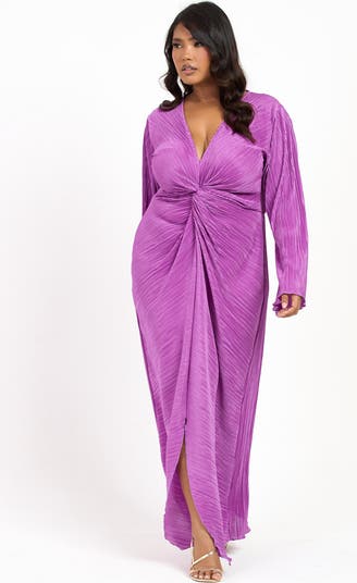 FASHION-SZN CURVE Curve Plisse Flare Sleeve Midaxi Dress, Main, color, Purple