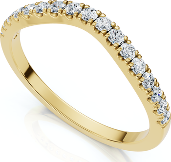 The Curved Accent Diamond Guard Ring is the ideal nesting band, specifically designed to complement and enhance a solitaire engagement ring. Crafted in luxurious 14k Gold, this slender band features a subtle U-shaped curve in the center, allowing the diamond head of a traditional engagement ring to fit flush and seamlessly, eliminating the undesirable gap common with straight bands. The entire ring top is set with brilliant Lab Grown Diamonds of exceptional quality (EF Color and VS Clarity), creating a continuous line of intense sparkle that beautifully frames the main diamond and instantly upgrades your bridal set with additional fire and glamour.