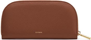 A feminine twist on the classic continental wallet, crafted from refined Italian pebbled leather with a center zip pocket, eight card slots, and two bill pockets. Its wrap-around silhouette can accommodate larger items like a passport and more during travel.