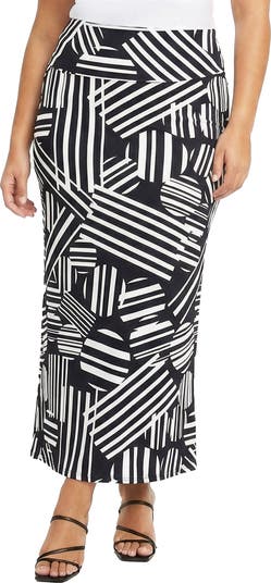 Curvy Essential Abstract Print Foldover Waist Maxi Skirt