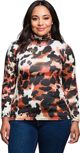Turn heads with this bold and modern mock neck plus size top featuring a striking and black animal print. Designed with long sleeves and a fitted silhouette, this piece pairs effortlessly with jeans, skirts, or trousers for both casual and dressed up looks. The soft, stretchy fabric ensures comfort all day while keeping your style sleek and polished.