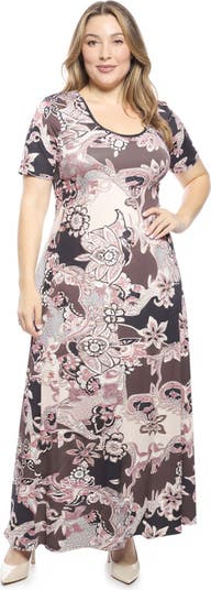 Elevate your everyday style with this 24seven Comfort Apparel plus size brown paisley print elbow sleeve A line maxi dress. Featuring elbow length sleeves and a soft scoop neckline, it blends comfort with chic elegance. The flowing A line silhouette flatters all body types, while the lightweight polyester blend ensures all day wearability. Perfect for casual outings, family gatherings, or relaxed evenings, and machine washable for effortless care.