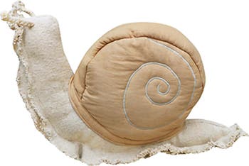 Our Lazy Snail cushion will be your little ones’ favorite! The shaped cushion has a body in natural cotton canvas with cut-edge finish and handmade braids as antennas. The Honey colored shell is made of a soft GOTS certified organic cotton, with a pattern of embroidered stitches.