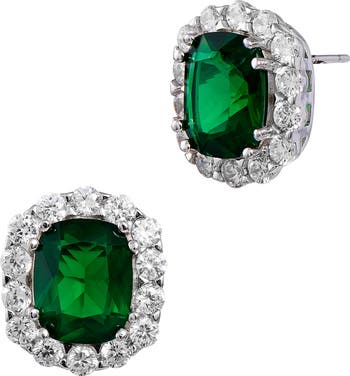 Sparkling cubic zirconia frames vibrant lab-created stones on these elegant and eye-catching stud earrings.