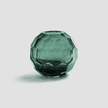 - Xagon is a classy round vase made of colored crystal.