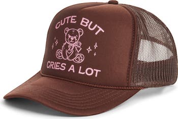 Let out your inner crybaby in this cute trucker hat featuring a five-panel design with breezy mesh in the back.