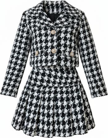 - Tweed-knit long-sleeve Houndstooth blazer jacket and