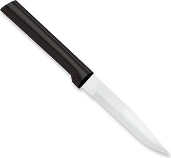The Rada Cutlery 3.875-Inch Serrated Steak Knife is built for effortless meat slicing at the table. The serrated stainless steel blade grips and cuts cleanly through steaks, chops, and other meats without tearing. Made in the USA from T420 high-carbon stainless steel, the blade offers durability and long-lasting performance. The precision serrations help maintain sharpness, making this knife a reliable choice for everyday dining and serving.