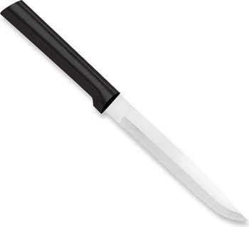 The Rada Cutlery 4.875-Inch Utility/Steak Knife is designed for versatility in both the kitchen and at the table. The narrow stainless steel blade easily slices steaks, chicken, pork chops, sandwiches, and vegetables with precision. Made in the USA from T420 high-carbon stainless steel, the hollow-ground blade delivers a sharp, durable edge that is easy to maintain. Lightweight and comfortable to use, this knife transitions seamlessly from prep work to serving.