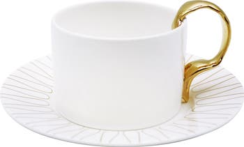 The Cutlery collection is Twig New York’s collaboration with the ceramic artist Hayoon Kim. The collection was inspired by the shapes of antique European cutlery and the absolute purity of white color of Fine Bone. In this collection, the shapes of these antique cutlery pieces are embossed directly onto bare plates to create a unique and contemporary design. The embossed designs add a pleasing texture to the plates. The cups, mugs, and jugs in this collection take the idea one step further with the use of bent spoon and fork shapes for their handles. For an added accent, the handles are finished in hand-painted 24k gold.