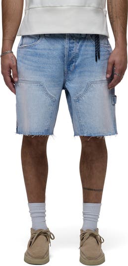 Nicked along the pockets and chopped at the hems, these shorts made of well-faded cotton denim sit above the hips and hit below the knees in an easy-wearing fit. Carpenter pocketing adds working-inspired details to the hardly-working vibe.