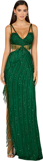 Cutout Beaded Gown with Fringes