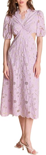 Cutout Detail Floral Cotton Eyelet Midi Dress