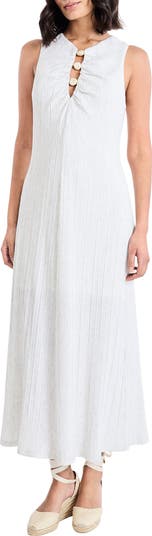 Smooth stone-like details add elemental appeal to a variegated ribbed dress that's all in for sunny-day fun.