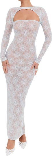 Cutout Open Back Long Sleeve Floral Lace Maxi Dress