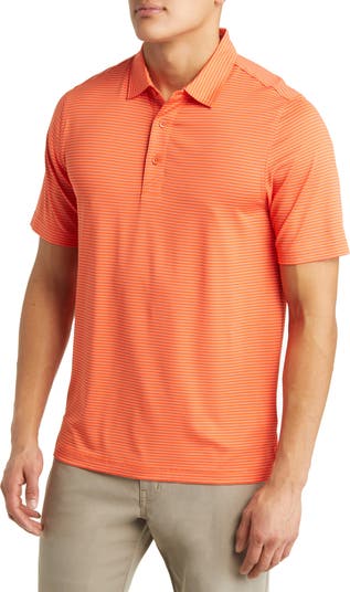Hit the course in a striped performance polo made from supersoft, moisture-wicking stretch jersey with UPF 50+ sun protection.