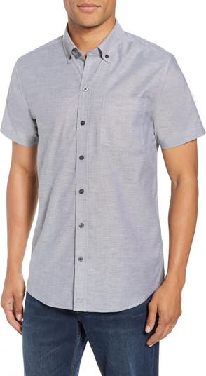 A classic oxford weave is matched with subtle, impeccable topstitching and a button-down collar for a short-sleeve shirt ready to go from meetings to meet-ups.