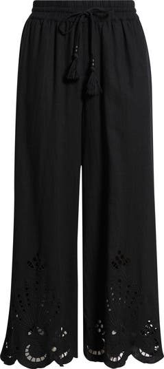 Cutwork Hem Linen Blend Pull-On Pants