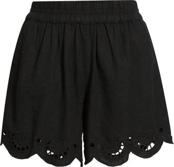 Cutwork Hem Linen Blend Pull-On Shorts
