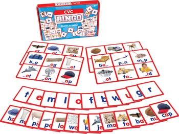 CVC Bingo is a picture matching game for teaching consonant vowel consonant patterns. Contains 4 boards and 24 cards. Ages 4+.