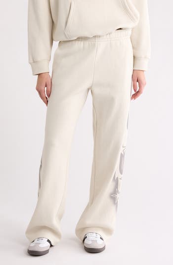 Shooting stars show up for weekend-official sweat pants offered in a roomy fit.