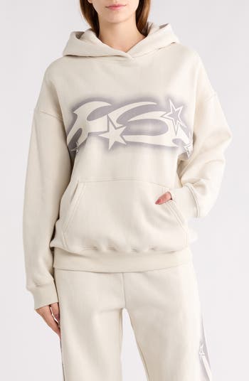 Build out your off-duty wardrobe with this comfy cotton-blend hoodie featuring an airbrushed star graphic and an oversized fit with slouchy dropped shoulders.