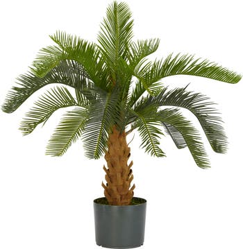 Kitschy and fun, this Plastic Cycas Tree stands 28 inches high with a brown foam trunk fanning out in the traditional cut patterns. Since it's foam, you never fear touching it! 16 long leaves cascade out in an overflowing pattern while the long tapered edges provide interesting patterns to draw attention. Stands in a six inch high pot to complete the arrangement.