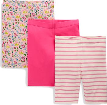 Your little rider can choose from three brightly colored styles with this set of pull-on bike shorts cut from an ultrastretchy cotton blend engineered for enduring snugness and quick shape recovery.