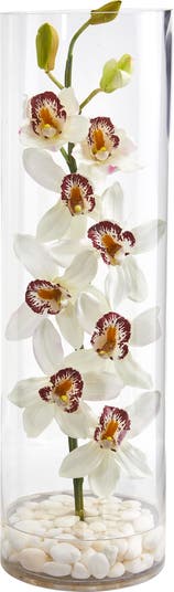 Cymbidium Orchid Artificial Arrangement in Tall Cylinder Vase