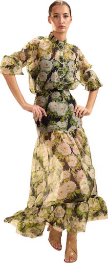 Silk organza for all summer long. The fitted waist and tiered bottom ruffle brings movement with every step.